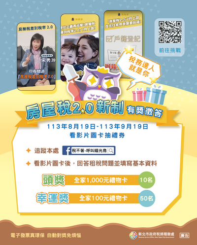 活動詳情請上「稅不著—呼叫暗光鳥」粉絲專頁(https://www.facebook.com/ntpctax/)或活動網站(ntpc-argame.com/)查詢。